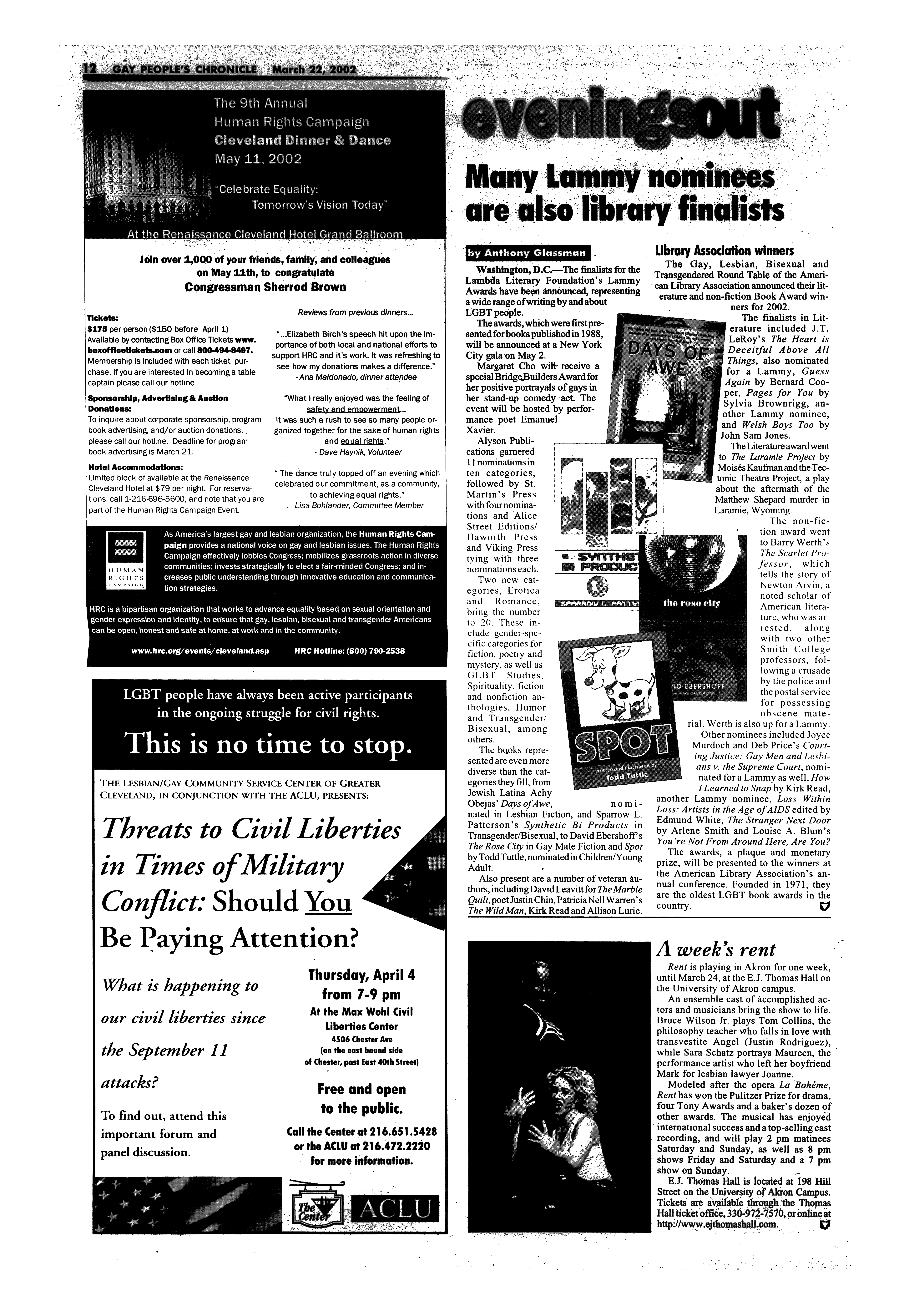 Enjoy this edition of the Gay People's Chronicle. Rather than clicking each page to open in a new screen, on a large screen you can keep hitting "ctrl+" until the image becomes large enough to read.