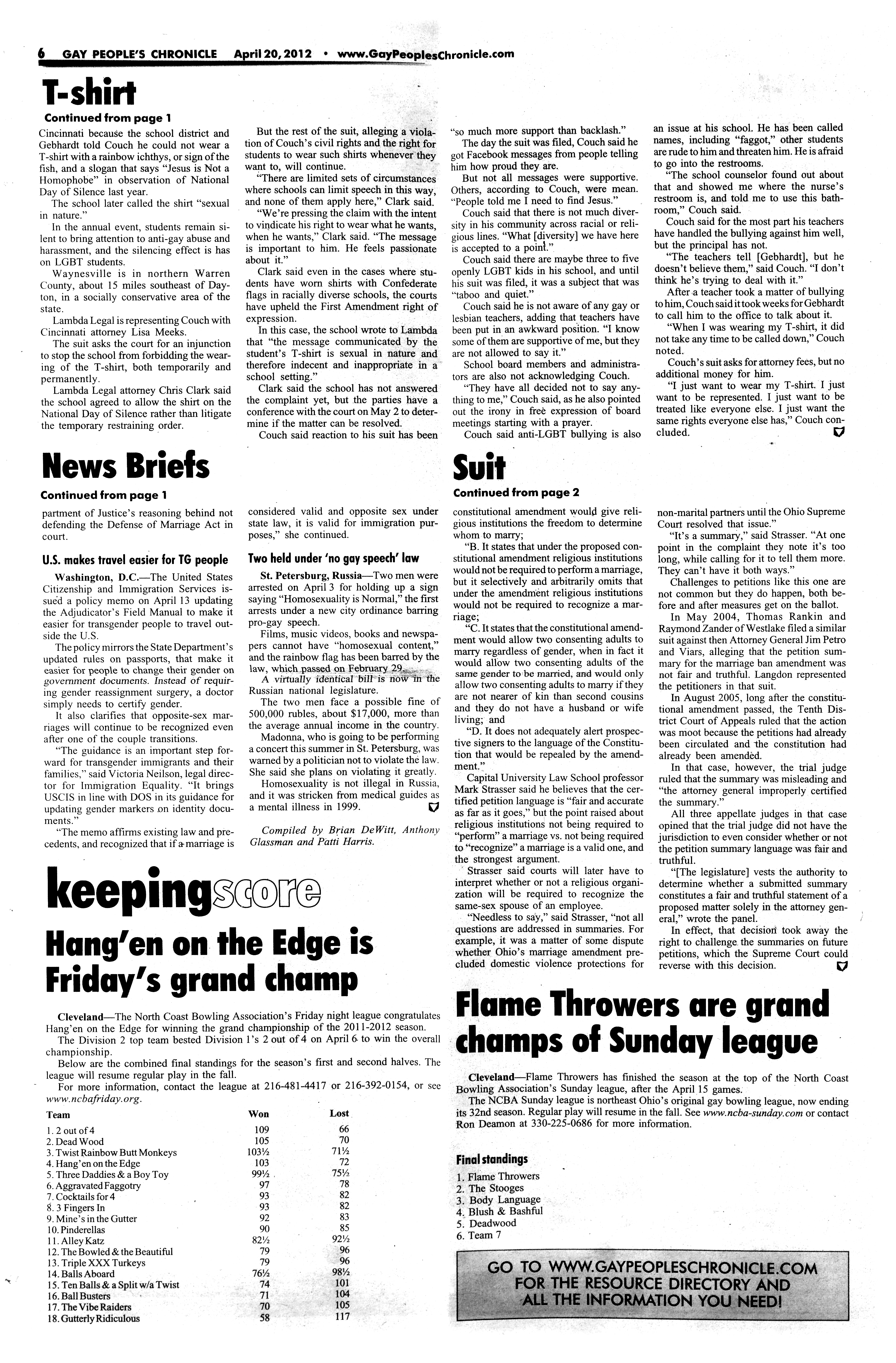 Review the Gay People's Chronicle dated April 20, 2012