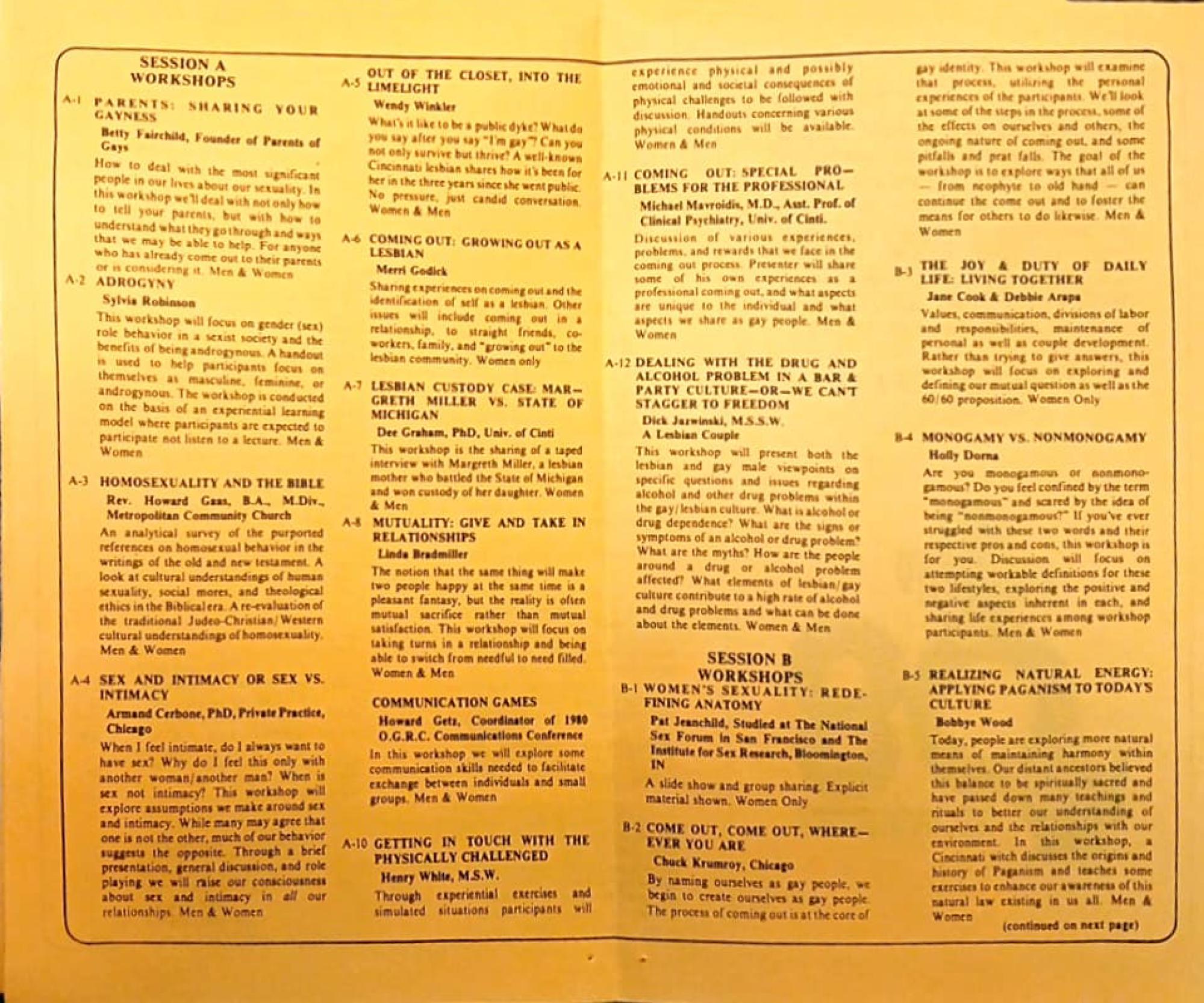from neophyte to old hand continue the come out and to foster the means for others to do likewise. Men & Women