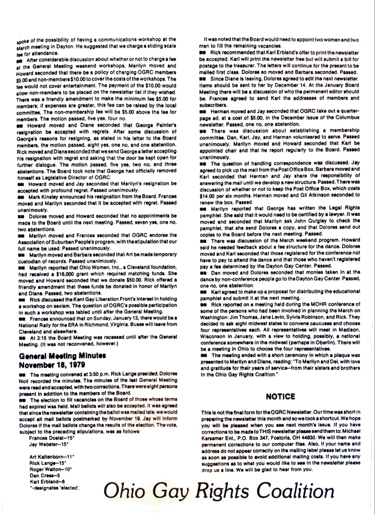 General Meeting Minutes November 18, 1979