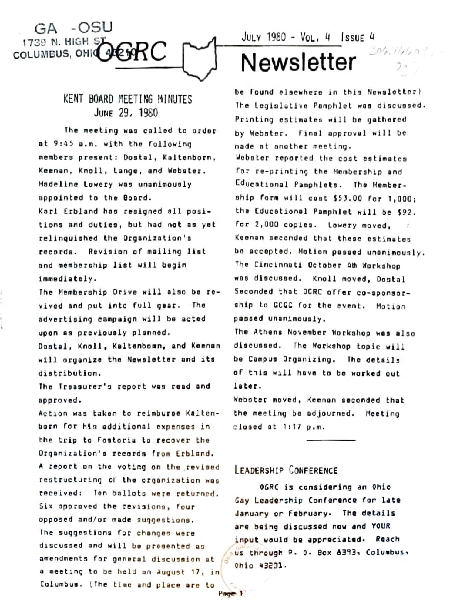 OGRC is considering an Ohio Gay Leadership Conference for late January or February. The details are being discussed now and YOUR input would be appreciated. Reach