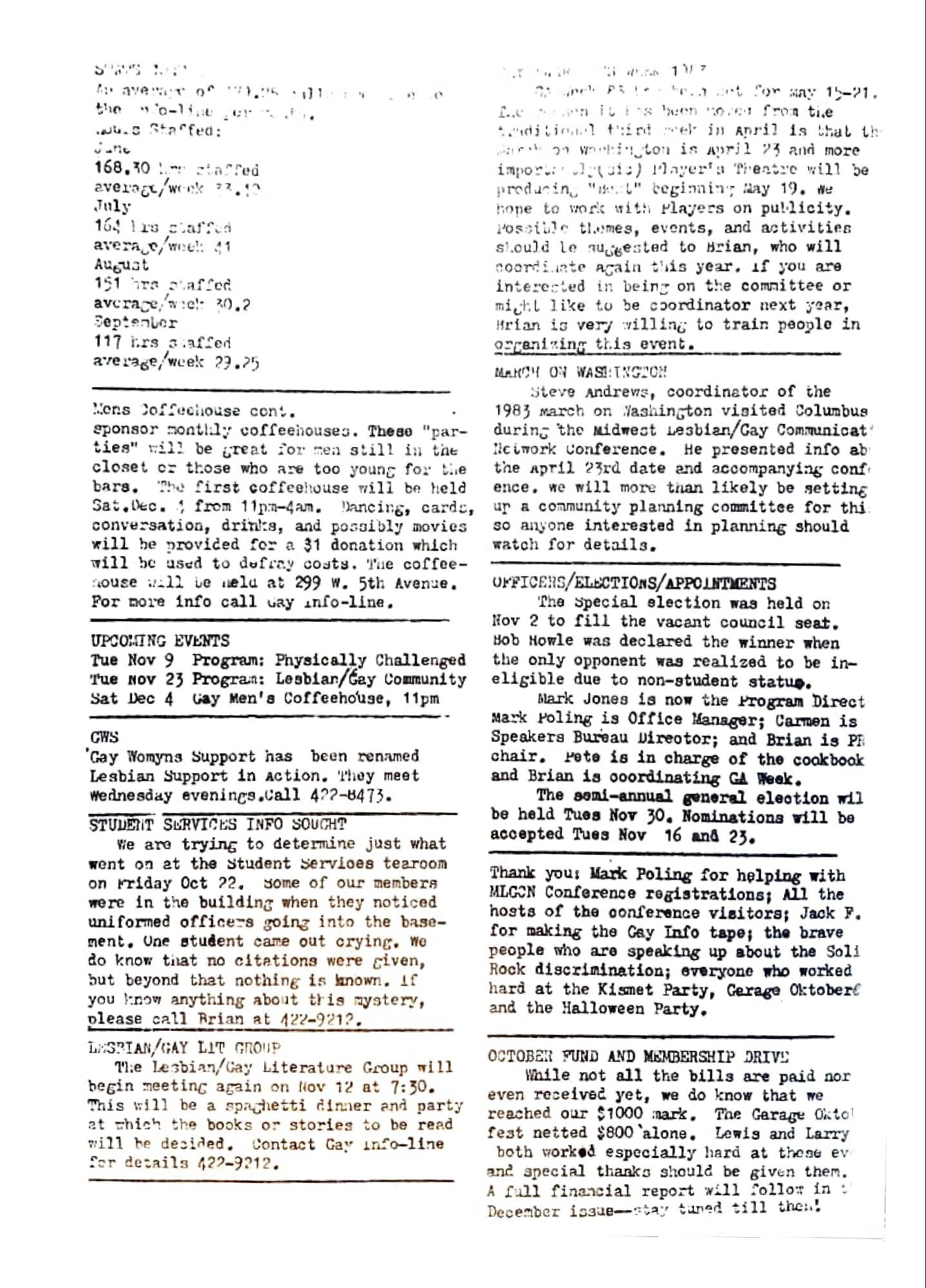 Steve Andrews, coordinator of the 1983 march on Washington visited Columbus during the midwest Lesbian/Cay Communicat lictwork Conference. He presented info ab the April 23rd date and accompanying conf ence, we will more than likely be getting up a community planning committee for thi so anyone interested in planning should watch for details.